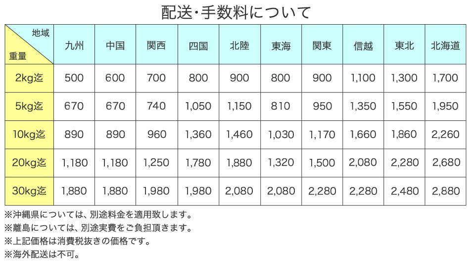 基本的に全国配送を行なっており、福岡県外のからのご注文の際には配送にてご対応致します。また、福岡県内からのご注文の際にはエリアによって異なりますので、改めて連絡させて頂きます。